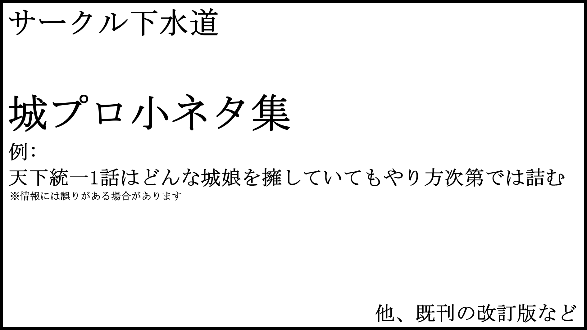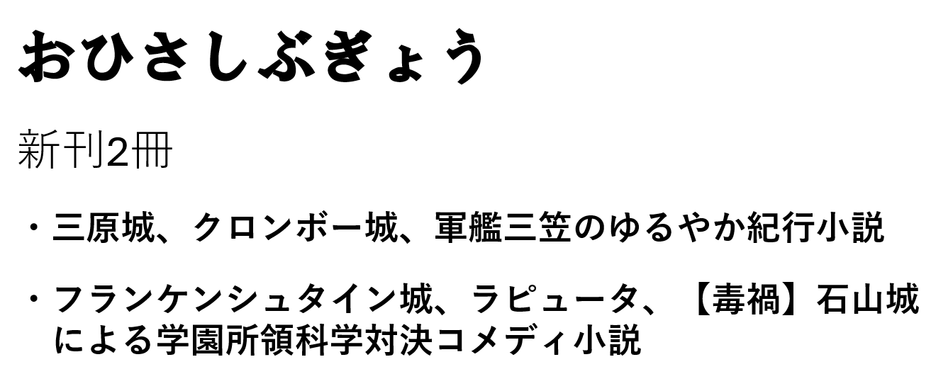 サークル名等の間違いがありましたらご連絡ください。